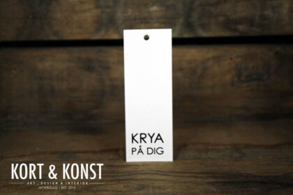 kortet har hål och snöre upptill så att de lätt kan fästas på en present, blombukett, flaska, eller hängas upp som ett minne.