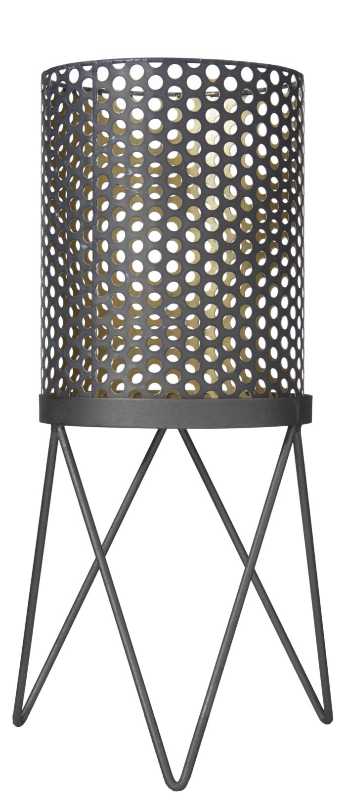 Ljusstakar & Lyktor, Wikholm FormLjuslykta på stativ. Svart och guld, 18*20cm och 17*25cm